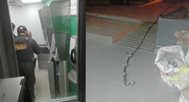 ERP. Nueve delincuentes a bordo de dos modernas unidades intentaron sustraer la madruga del viernes a punta de combazos y con una larga cadena, una fuerte suma de dinero de dos cajeros automáticos de una conocida entidad bancaria ubicada en pleno centro de Talara, se informó.