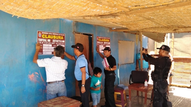 ERP. Personal de la Subgerencia de Fiscalización de la Municipalidad Provincial de Talara a cargo de Carlos Brinceño, con el apoyo del Serenazgo, Defensa Civil y la Policía Nacional del Perú, intervino y clausuro el bar Julia y un chicherio ubicados en la margen de la quebrada Yale en el cono Norte del distrito de Pariñas, provincia de Talara.