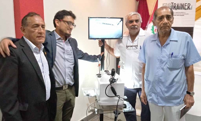 ERP. El director del hospital de EsSalud de Talara, Ricardo Zúñiga y el jefe del área de cirugía, William Seminario, recibieron de manos del reconocido médico especialista en cirugía general, gíneco-obstetra y en cirugía endoscopia o laparoscopia, Fernando Alayo Sirlupú, la donación de un “Fastrainer” –Simulador laparoscópico- para entrenar y adiestrar a especialistas de dicho hospital y con ello mejorar la calidad de intervenciones, sobre todo a pacientes gestantes.