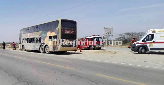 ERP. Nueve pasajeros que iban a bordo de un ómnibus interprovincial, resultaron heridas luego que se registrara un accidente de tránsito la tarde de hoy en la Panamericana Norte, siendo auxiliados y conducidos por bomberos de la Compañía Nº 67 de Talara a la posta más cercana para ser atendidos por los galenos de turno.