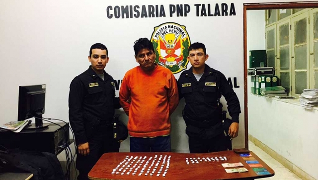 ERP. La policía de Talara intervino la noche del sábado a un microcomercializador de droga del cono norte, a quien hallaron en el interior de su inmueble dos bolsas ocultas en una caña de guayaquil, que contenía 115 ketes de PBC, siendo conducido a la delegación policial donde viene siendo investigado en presencia del fiscal de turno.