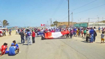 ERP/V.Arrunátegui.Día de protestas en Talara. Pescadores artesanales de la Caleta El Ñuro en compañía de sus familiares, bloquearon por varias horas la Panamericana Norte en señal de protesta contra la imparable depredación de especies hidrobiológicos dentro del límite permitido por parte de embarcaciones de arrastre sin que las autoridades marítimas hagan algo al respecto.