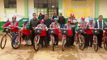 ERP. La Unidad de Gestión Educativa Local Chulucanas distribuyó 315 bicicletas a escolares que viven en zonas rurales del distrito de Frías, como parte de la implementación del programa 'Rutas Solidarias' del Ministerio de Educación.
