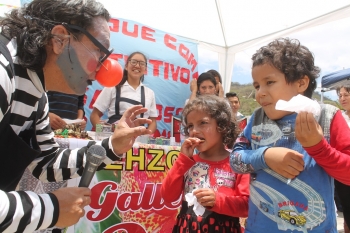 ERP. Con la finalidad de prevenir la anemia en niños de 3 a 6 años, escolares de la sierra piurana promueven el consumo de galletas de Achira, una planta muy conocida en esta parte del territorio regional, promoción que se realiza durante feria nutricional en el distrito de Santa Catalina de Mossa, en la provincia de Morropón del departamento de Piura.