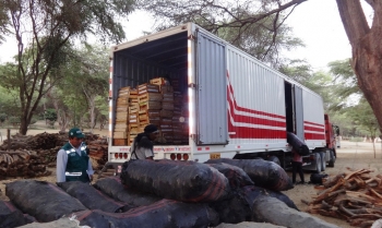 ERP. El trabajo coordinado del Servicio Nacional Forestal y de Fauna Silvestre (SERFOR) del Ministerio de Agricultura y Riego y la División de Medio Ambiente de Piura de la Policía Nacional del Perú permitió la intervención de un tráiler y dos camiones con más de 12 toneladas de carbón vegetal de algarrobo de procedencia ilegal, en el sector La Antena de la provincia de Sechura.