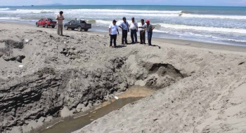 Ante esta situación, los sub directores de Infraestructura y Obras de la Sub Región Luciano Castillo Colonna, Ing. Walter Castro y Hanssi Ojeda, respectivamente, llegaron hasta la desembocadura en mención y pudieron cerciorarse del problema que se viene generando ante la crecida del río Chira en esta zona.