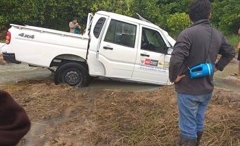 ERP. Una camioneta perteneciente al Ministerio de Salud en Chulucanas, fue arrastrada por la corriente de la quebrada a la altura del badén Chililique, en el momento que transportaba un paciente de Silahua Frías.