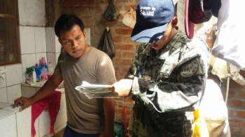 El personal visitó las viviendas identificando la existencia de objetos que pueden convertirse en criaderos del zancudo transmisor de dengue así como colocando larvicida en los depósitos donde se guarda el agua en los domicilios.