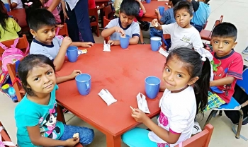Entre estas instituciones educativas se encuentra el colegio Genaro Martínez, del centro poblado Villa Pedregal Grande, donde 717 niñas y niños de los niveles inicial y primaria disfrutaron el último lunes de un rico desayuno que consistió en un bebible de harina de maíz con leche y galletas de kiwicha.