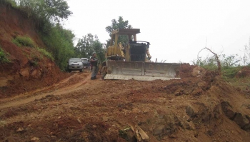 ERP/Nelson Peñaherrera Castillo. Atardece el sábado 10 y la maquinaria se detiene en el paraje Flor de Agua tras otra penosa jornada corrigiendo el estropicio creado por la Naturaleza, que sigue enviando garúas matinales aparentemente empecinadas en impedir la conectividad vial. La ofensiva comenzó el martes 6 desde tan abajo como Piscán hasta tan arriba como La Laguna, donde uno de los vehículos se paralizó por una avería el domingo 11.