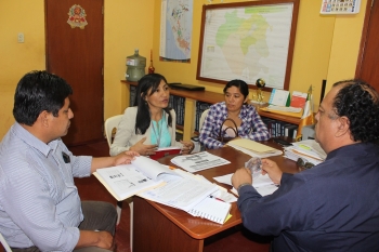Participaron de esta reunión: Prof. Manuel Panta Salazar, director de UGEL Chulucanas; Prof. Carlos Macalupú Ramos, especialista de educación de UGEL Chulucanas; Lic. Victoria Vilela Palacios, promotora del CEM y Sra. Elva Cacñahuaray Suárez, especialista de prevención de la violencia en la comunidad educativa del Ministerio de la Mujer.