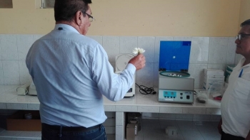 “El ambiente cuenta con dos centrífugas, un microscopio y un equipo bioquímico con los cuales están en capacidad de poder realizar cualquier tipo de análisis que el paciente requiera como son: anemia, glucosa, colesterol, triglicéridos, parasitosis, orina, heces, hemograma, entre otros”, informó el director de la Sub Región de Salud Morropón Huancabamba, Dr. Aníbal Calle Chumacero.