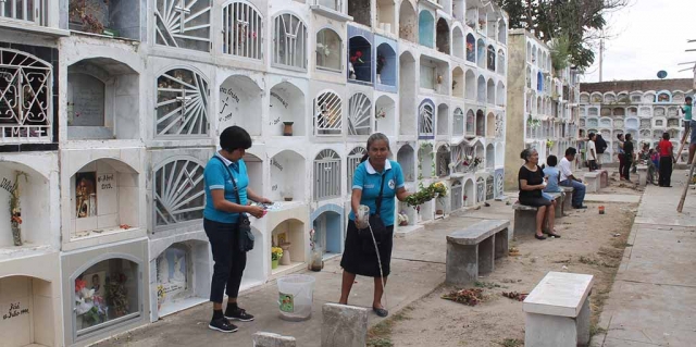 ERP. Brigadas de la Sub Región de Salud Morropón Huancabamba inspeccionaron el cementerio Divina Misericordia de Chulucanas y procedió a eliminar el agua de los floreros de los nichos, que los ciudadanos colocan para coronar a sus deudos, olvidando que se convierte en un foco infeccioso de zancudo Aedes Aegypti que produce el temible dengue, así como chikungunya y zika.