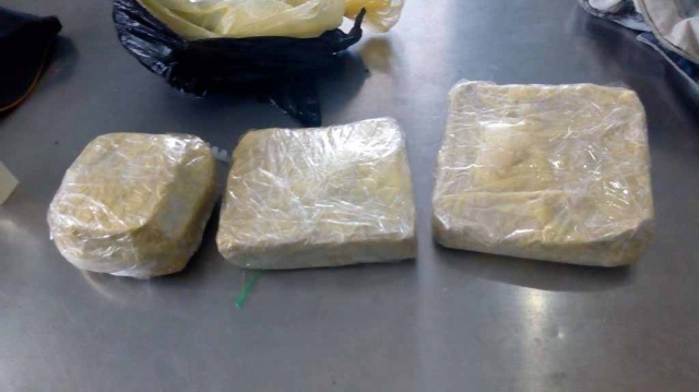 En su loca huida, éste dejó su bolso donde guardaba sus prendas de vestir. Asimismo, en su interior se decomisó una bolsa plástica negra donde se encontró tres paquetes precintados amarillos, uno en forma ovoide, el resto cuadrados, el cual contenía el estupefaciente de alta pureza.