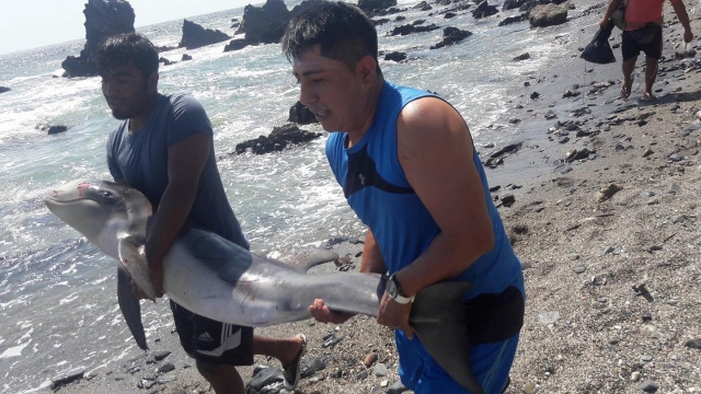 Manuel Macalupú Huayama acompañado de su sobrino, paseaban por la playa con toda tranquilidad y mirando las siempre misteriosas aguas del océano; cuando de repente observaron en la orilla un delfín que había quedado varado como consecuencia de la fuerza del agua. De pronto valoraron que es una especie en extinción y en conservación y adoptaron la decisión más pertinente.