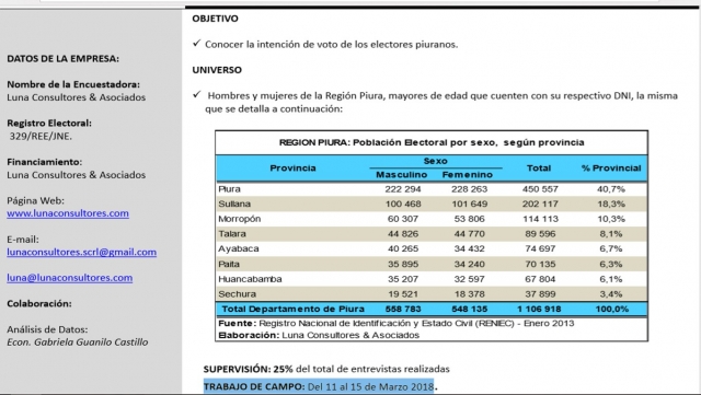 ERP. Las elecciones municipales en toda la región Piura, son una oportunidad para elegir al mejor vecino. La encuestadora Luna Consultores, ha dado a conocer los resultados de su estudio realizado en el mes de marzo en las provincias de Morropón, Paita, Ayabaca, Huancabamba y Sechura. Aún faltan meses para la realización de las elecciones; sin embargo, son tendencias que van marcando la diferencia.
