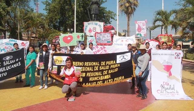 En la actividad, donde además participaron estudiantes del instituto Vicús y población en general, resaltaron los mensajes de “Donar sangre hoy, es dar vida mañana”, “Un acto de solidaridad es donar sangre”, “Juntos podemos salvar vidas”; además se entregó material informativo casa por casa.