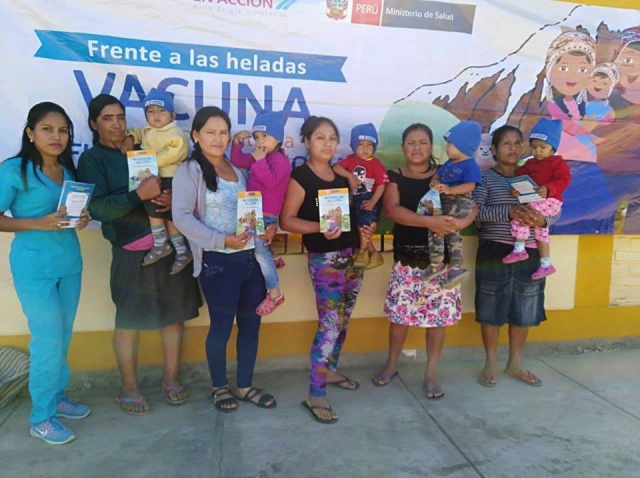 También se viene realizado campañas de vacunación contra la influenza y neumococo; además se ha distribuido material educativo impreso (banner, roll script y dípticos) y gorros abrigadores.