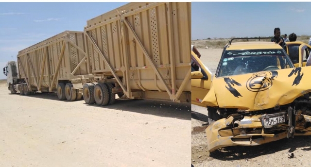El accidente se produjo a eso de las 13 horas con 30 minutos, el Pulsar de Placa de Rodaje A6M-168 de propiedad de Florencio Antonio Flores Gonzáles y Verónica Gregoria Juárez Palomino iba con dirección a la ciudad de Paita, cuando colisionó por causas que se desconocen con un tráiler conocido como “cañero” y que se dedican justamente a transportar el insumo para la producción de etanol.