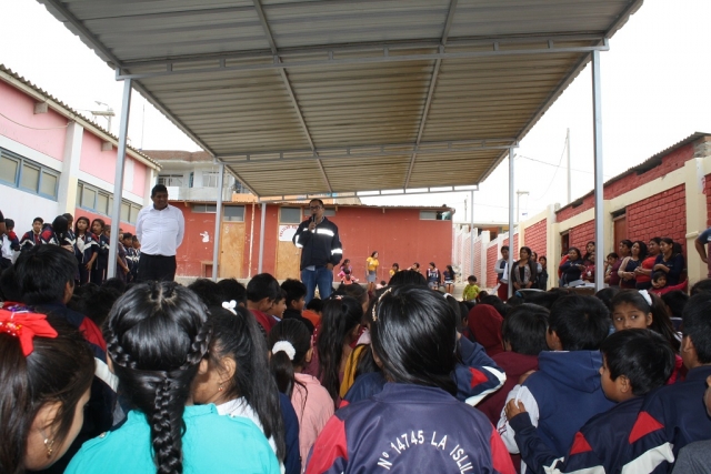 ERP. Importante acción en beneficio de estudiantes. Los alumnos de primaria y secundaria de la I.E. N° 14745 – La Islilla ya no volverán a realizar sus actividades físicas, recreativas o de formación a la intemperie y expuestos a los fuertes rayos solares. Ello debido a que la empresa Andalucita S.A. financió recientemente la construcción de dos techos metálicos para benefició de más de 393 estudiantes.
