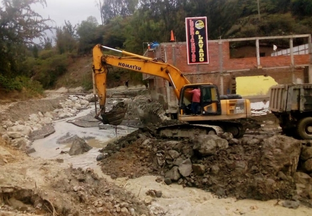 ERP. Acciones a favor de la población huancabambina afectada por el desborde reciente. El GR apoyará con 14,922 galones de combustible los trabajos de encauzamiento y descolmatación de las quebradas Longulo y su afluente La Chila, cuyos desbordes, el pasado sábado por la tarde, afectaron a un vasto sector de la población de la cuenca baja a inmediaciones del barrio Chalaco de la ciudad de Huancabamba..