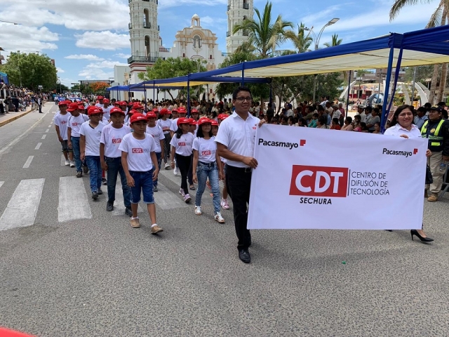ERP. En el marco del Aniversario de la provincia de Sechura; Cementos Pacasmayo, líder en construcción segura y responsable, se sumó a la celebración en un colorido desfile cívico patriótico junto a los alumnos del Centro de Difusión Tecnológica (CDT) quienes compartieron con los asistentes costumbres, trajes y bailes típicos previstos para esta fecha de gran connotación.