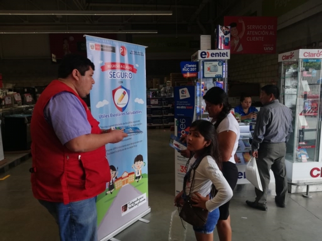 Durante la actividad, realizada en el supermercado Precio Uno de Chulucanas, se enseñó a los asistentes cómo diferenciar productos tóxicos sin autorización sanitaria y útiles escolares con la garantía de salud respectiva.
