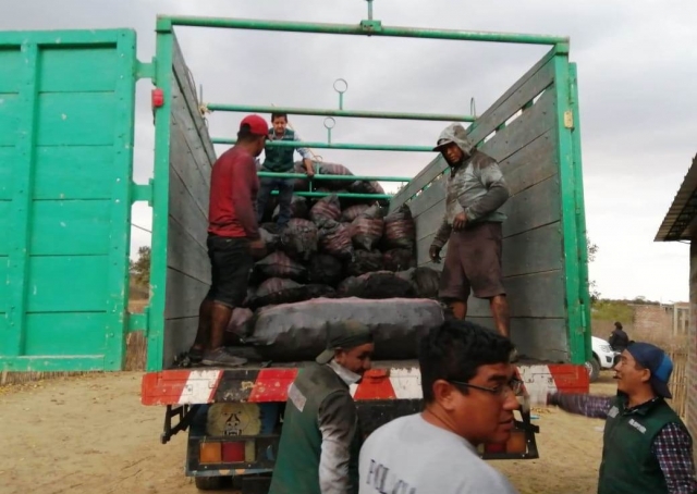 En una de las viviendas de “El virrey viejo – Tres marías”, las autoridades encontraron listos para comercializar 483 sacos de carbón vegetal de algarrobo, cada saco de 60 kilos, haciendo un total de 28,980 kilogramos de carbón de origen ilegal.