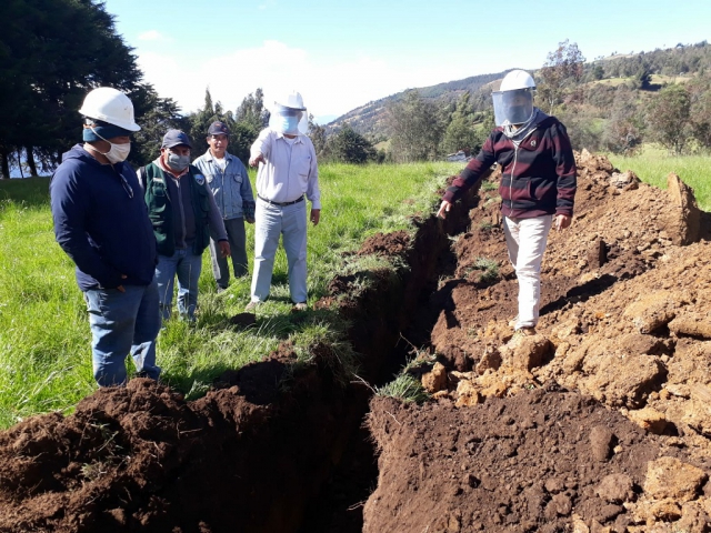 Asimismo, dijo que en la en la localidad de Limón se están ejecutando los trabajos de trazo y replanteo para su excavación de zanjas con maquinarias de 02 excavadoras, 02 minicargadores frontales 02 volquetes y un camión baranda. Dichos trabajos se vienen ejecutando con todas las medidas de seguridad frente al Covid-19, y está generando empleo a pobladores de la zona.