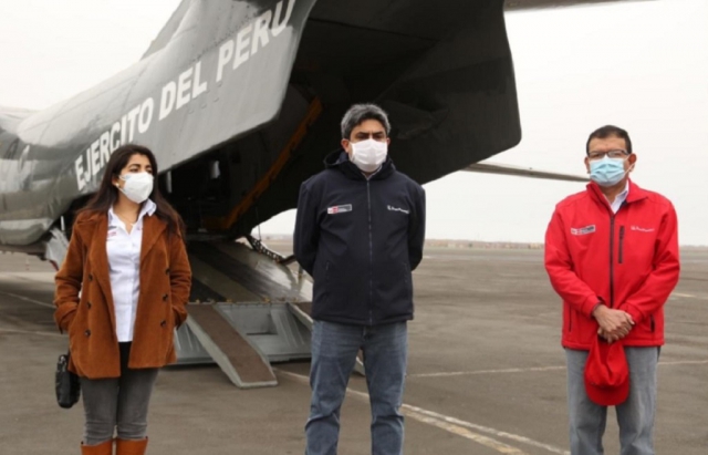 ERP. Los ministros de Agricultura y Riego, Jorge Montenegro Chavesta, y de Educación, Martín Benavides, acompañados por la directora ejecutiva de la Autoridad para la Reconstrucción con Cambios, Amalia Moreno, trasladan hoy a Lambayeque y Piura un lote de equipos médicos, medicamentos y otros insumos para fortalecer la capacidad de respuesta del personal médico de ambas regiones frente a la pandemia del covid-19.