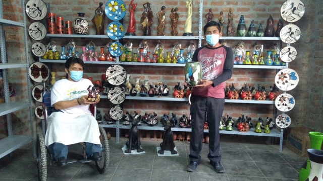 Félix Inga, es otro de los artesanos que retoma sus actividades, de tal manera que sus piezas de arte se encuentran en exhibición y venta. Si la pandemia los afectó económicamente, saben que solo el trabajo diario, constante y seguro les devolverá la oportunidad que su artesanía vaya más allá de la provincia.
