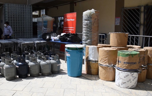 Entre los materiales donados se encuentran cocinas industriales, ollas de aluminio, cucharones de aluminio, jarras medidoras, gorros de cocinas, baldes de plástico, etc. La empresa también entregó EPPs de protección ante la Covid-19 como mascarillas de tela, guantes de cocina y de látex y mandiles.