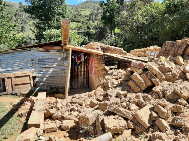 ERP. De una muerte segura se libraron los integrantes de una familia en el distrito de Pacaipampa, luego que producto de las intensas lluvias su precaria vivienda se desplomó ante la atónita mirada de sus ocupantes, quienes consiguieron salir ilesos y no ser aplastados por los pesados adobes.