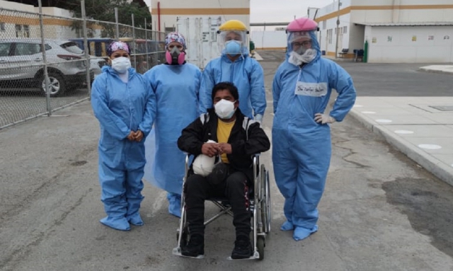 La profesional del área de atención Covid-19, Dra. Evelyn Guillén, reconoció el compromiso del personal de salud que trabaja en el indicado nosocomio, que permitió la recuperación del señor José Fiestas y que regrese a casa justo en el Día del Pescador. Ahora le corresponde continuar con su sanidad en compañía de la familia, indicó.