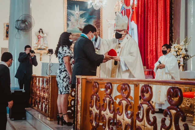 ERP. La Municipalidad Provincial de Paita impuso la medalla de oro a la virgen de las Mercedes al cumplirse 100 años como Patrona de las Fuerzas Armadas. Terminada la eucaristía, dirigida por el arzobispo de Piura y Tumbes, Mons. Jose Antonio Eguren Anselmi S.C.V, el mixturero de la Hermandad Virgen de las Mercedes y San Francisco de Asís le impuso la medalla en nombre del Alcalde y la comunidad de Paita.