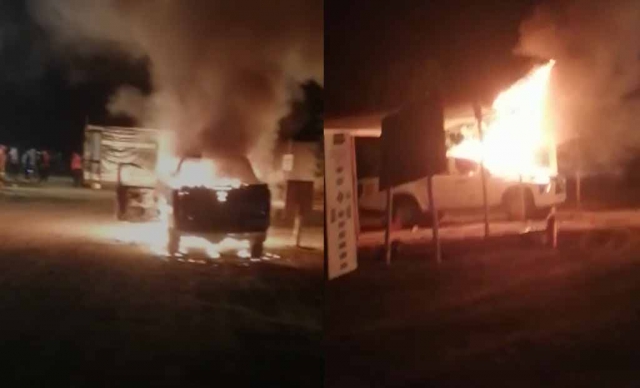 Camioneta incendiada en los disturbios en el distrito de La Huaca - Paita.