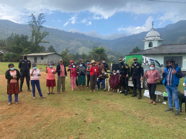ERP. En una clara muestra de solidaridad al prójimo, efectivos policiales de la Comisaría Ayabaca de la Región Policial Piura, brindó desayunos, mascarillas y charlas preventivas contra la COVID – 19 a pobladores de los sectores Huamarata y Pampas de Río, en el distrito y provincia de Ayabaca.