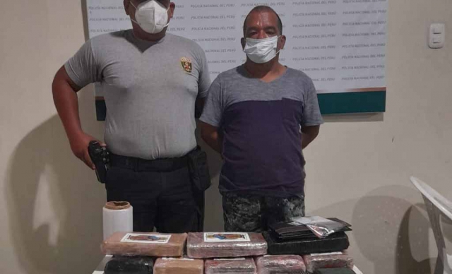 Según requerimiento de la Fiscalía Especializada en Delitos de Tráfico Ilícito de Drogas el imputado Peter Iván Sánchez Carbonell fue intervenido por la policía en una trocha carrozable en el caserío de Jambur – Paimas, provincia de Ayabaca, a un costado de una camioneta color plata cerrada y en momentos que pretendía darse a la fuga.