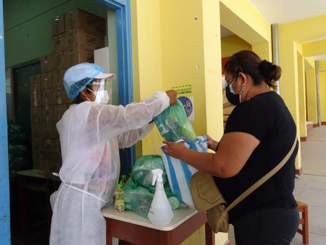 En el marco de la nueva normalidad, los alimentos son recogidos en las escuelas por las madres, padres o apoderados de los escolares, para luego ser preparados en el hogar y consumidos por los escolares.