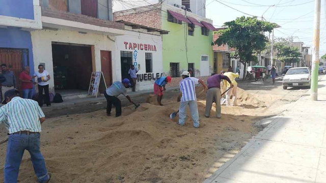 ERP. Trabajos se iniciaron en la calle Cusco. Con la finalidad de evitar la acumulación de agua producto de las lluvias, la Municipalidad de Castilla, inició la colocación de arena para rellenar las calles donde se forman aniegos.