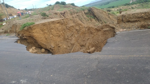 La carretera, tiene una cuesta y en la parte superior una enorme ladera, donde llovió copiosamente, afectando la carretera. Los huaicos bajaron con velocidad y levantaron la tenue carpeta asfáltica. Asimismo, la destrucción, considera que no existe una canalización adecuada para evitar que este tipo de hechos se ocasionen cuando existen o se presentan fuertes lluvias.