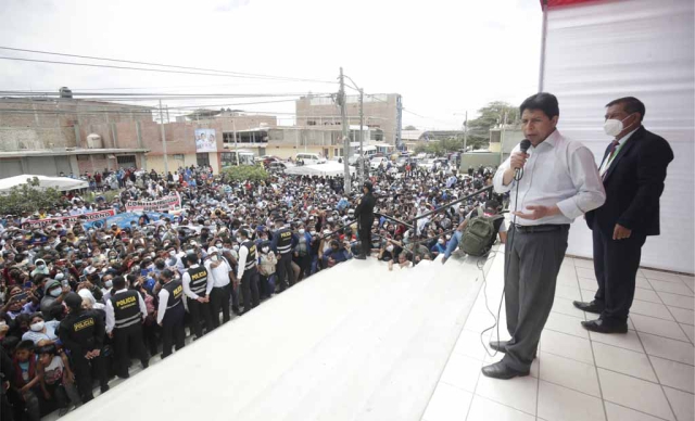 “Tener una planta de fertilizantes en el Perú es un proyecto anhelado de los agricultores y ya estamos empezando, con la finalidad de que el país tenga su propia planta procesadora de fertilizantes, aprovechando los yacimientos que tenemos acá en Bayóvar”, señaló el presidente Castillo en su discurso.