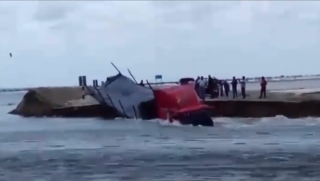 A través de videos se pudo conocer que un vehículo de carga pesada se hundió debido a la erosión generada por esta laguna que se forma en cada período lluvioso y cuya extensión es bastante considerable.