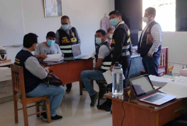 ERP. El fiscal provincial Javier López Romaní y los fiscales adjuntos José Jiménez Moscol y Miguel Jesús Berrú Huamán, del 3er despacho de la Fiscalía especializada en delitos de corrupción de funcionarios de Piura, intervinieron esta mañana las Oficinas de la Inspectoría de la PNP de Piura para llevar a cabo una diligencia de allanamiento e incautación de bienes y documentación que se encuentren vinculados a la denuncia pública ciudadana de los pobladores del Distrito de Bernal en contra de su ex comisario.