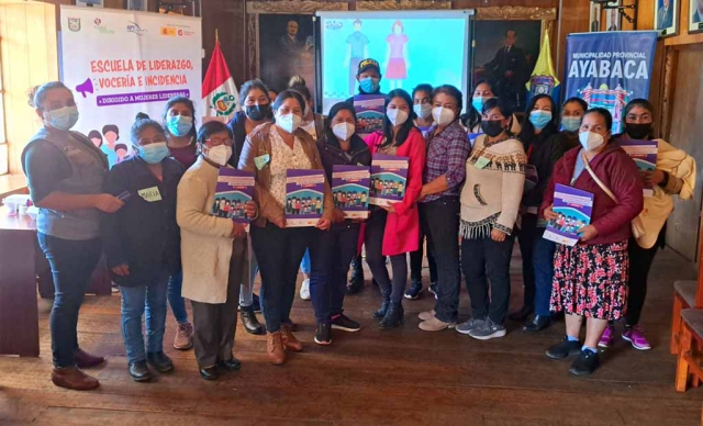 ERP. Un total de 42 mujeres lideresas participaron en la primera sesión de esta escuela que se lleva a cabo de manera descentralizada en los distritos de Suyo, Montero y Ayabaca, como parte del Proyecto de "Fortalecimiento de los gobiernos locales, comunidades y organizaciones de mujeres para garantizar una vida libre de violencias de género en Ayabaca" que ejecuta el Centro de la Mujer Peruana Flora Tristán y Apy Solidaridad en Acción.