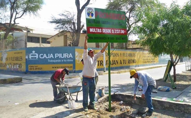 ERP. Según ordenanza municipal se aplicarán multas desde 237 soles. Con el objetivo de conminar a la población a no arrojar desechos en la vía pública, la comuna castellana inició este viernes la colocación de letreros donde se exhorta a la población cumplir con la ordenanza municipal 002 – 2007, que prohíbe arrojar basura en la calle.