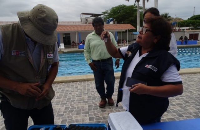 Pariñas/Talara (ERP). Control sanitario para comprobar que las piscinas de la ciudad tengan calificación de saludables y por lo tanto estén aptas para el baño de las personas.