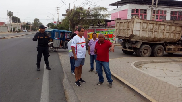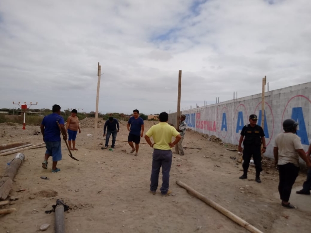 ERP. Pretender invadir área de terreno. Imponiendo el principio de autoridad dispuesto por el alcalde, José Aguilar, personal de la subgerencia de Fiscalización y agentes de serenazgo de la Municipalidad de Castilla, evitaron este domingo que un mecánico de la zona instale un precario taller de enllante y desenllante de vehículos en un espacio público.