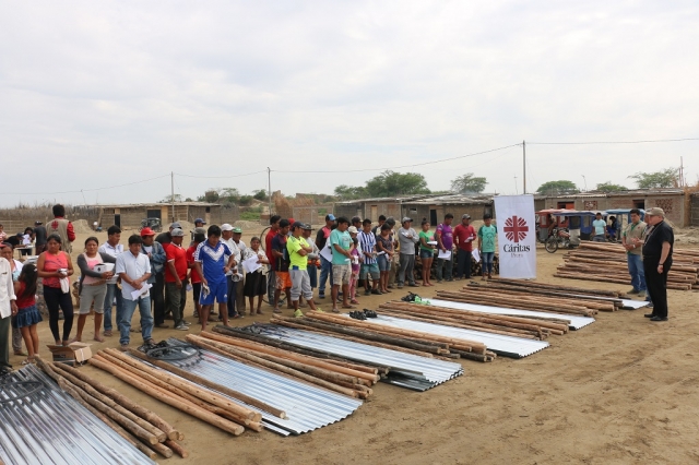 ERP. Se han cumplido 9 meses desde aquel 27 de marzo en que las aguas del Río Piura se desbordaron inundando la ciudad y dejando a su paso una estela de dolor y desolación principalmente en el Bajo Piura, el Arzobispo Monseñor José Antonio Eguren Anselmi, S.C.V., Presidente de Cáritas Arquidiocesana, llegó una vez más hasta el Anexo Santa Rosa ubicado en el Distrito de Cura Mori para encontrarse con un gran número de familias a quienes se les hizo entrega de un importante donativo para el mejoramiento de sus hogares.
