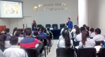 ERP. Los fiscales escolares de las instituciones educativas de Castilla fueron prevenidos sobre "Los riesgos actuales para los adolescentes en redes sociales", como parte del ciclo de charlas de capacitación del Plan de Trabajo 2016 para el programa Fiscales Escolares aplicado por la Fiscalía Civil y Familia con el apoyo de la Presidencia de la Junta de Fiscales Superiores del Distrito Fiscal de Piura.